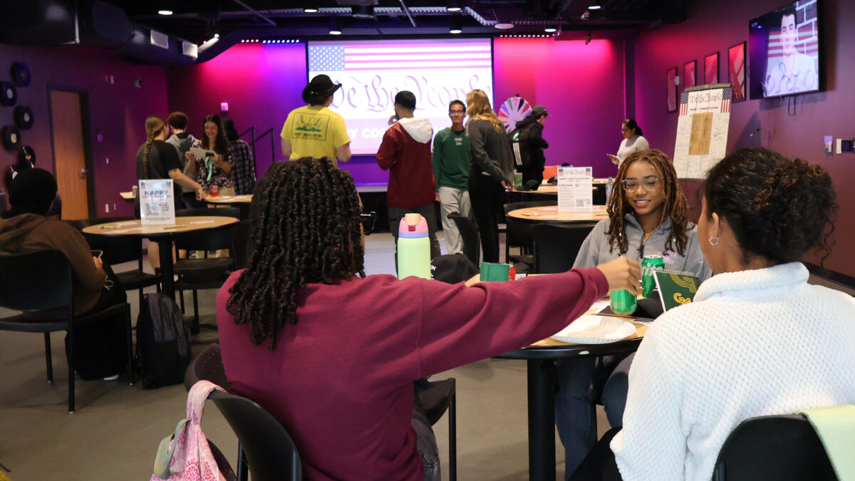 The second event was Constitution Day on Wednesday, September 17th in The Hub’s Side Pocket. Student Media helps the Mason community observe Constitution Day each year by hosting a celebration featuring refreshments, a prize wheel, trivia questions, free pocket Constitutions, a chance to “Sign the Constitution,” and the “Preamble Scramble” where students solve a giant puzzle by re-constructing our founding document’s Preamble that begins with three important words: “We the People…” Watch a quick video recap below!
